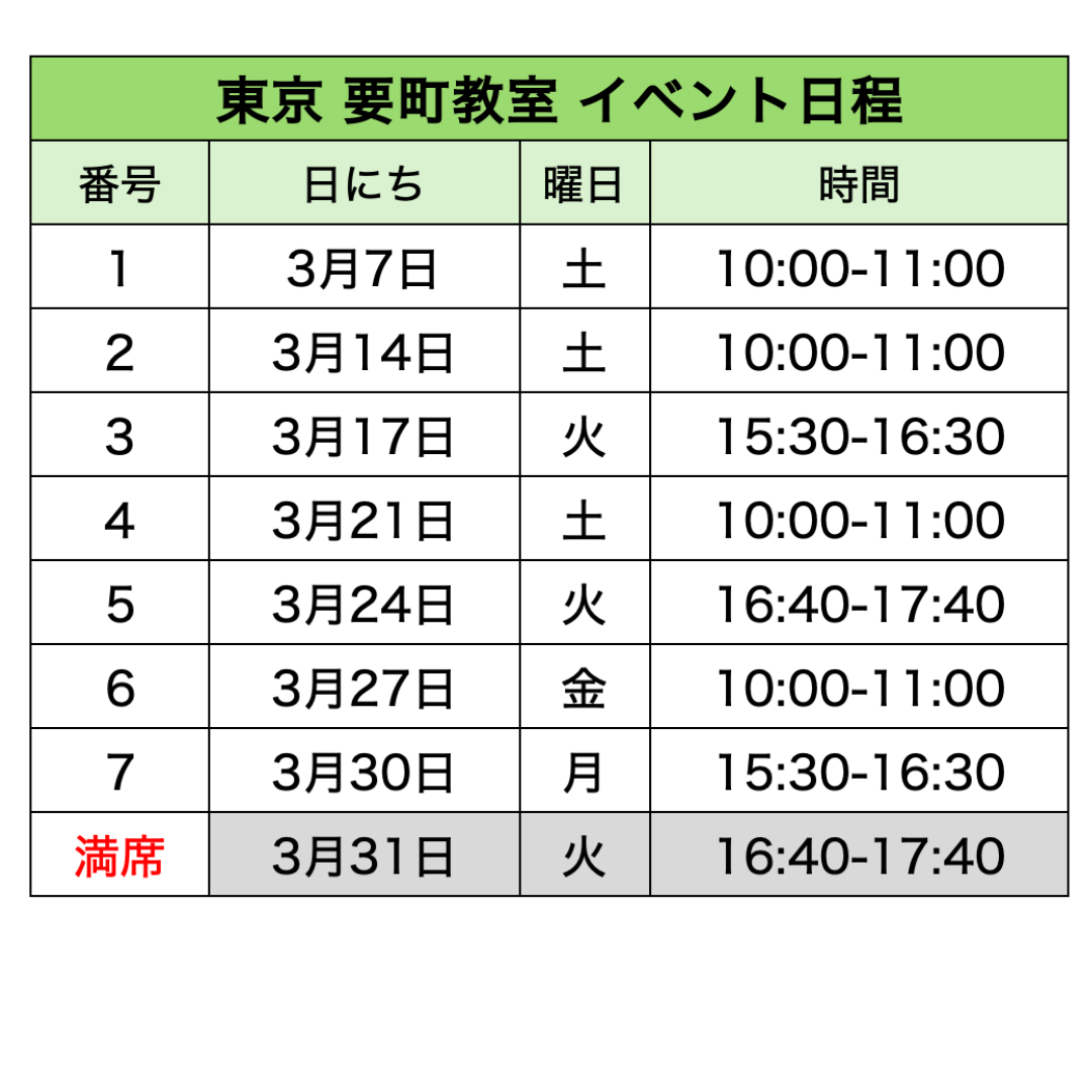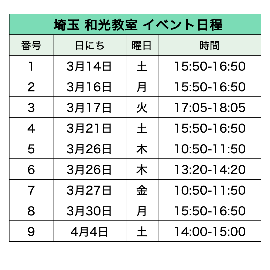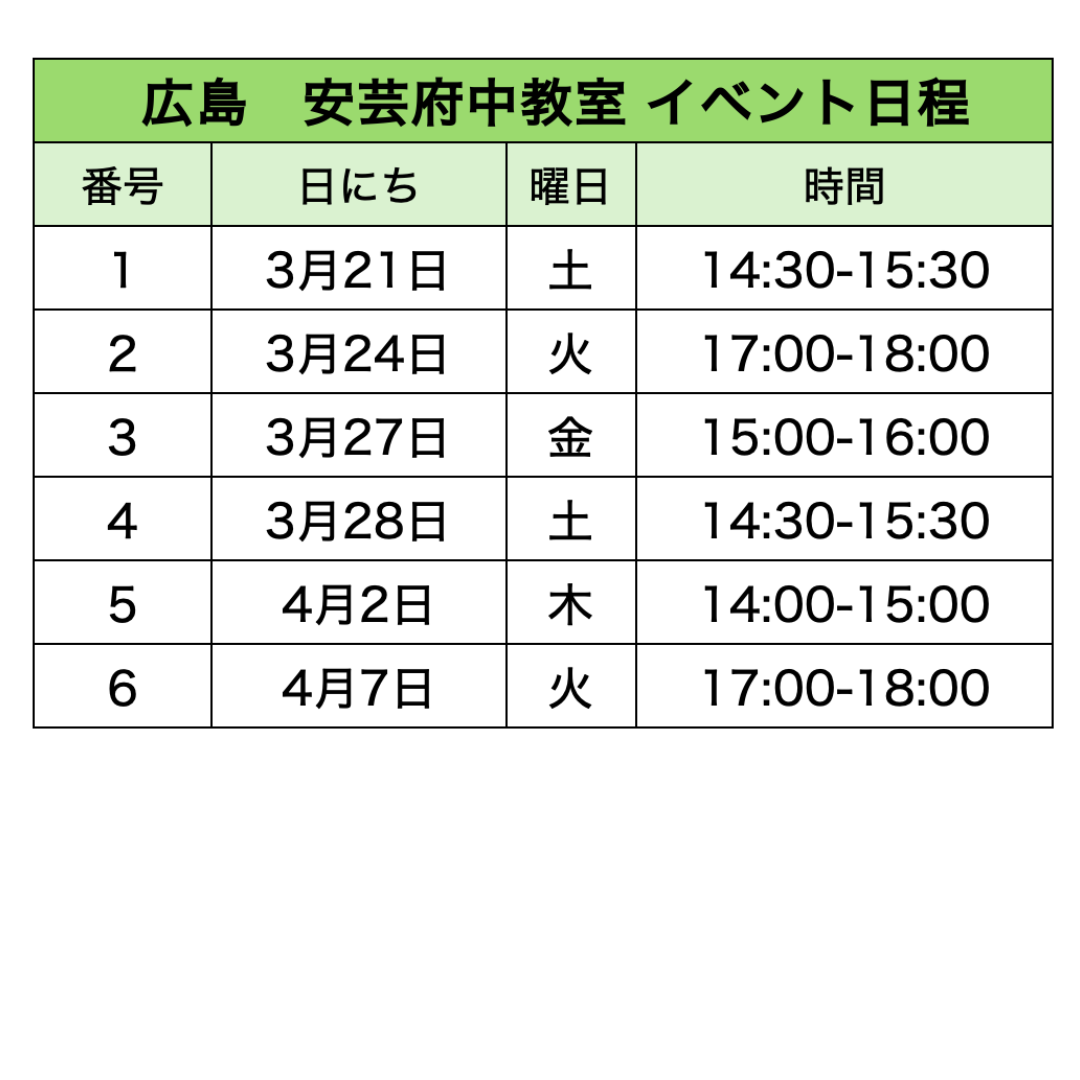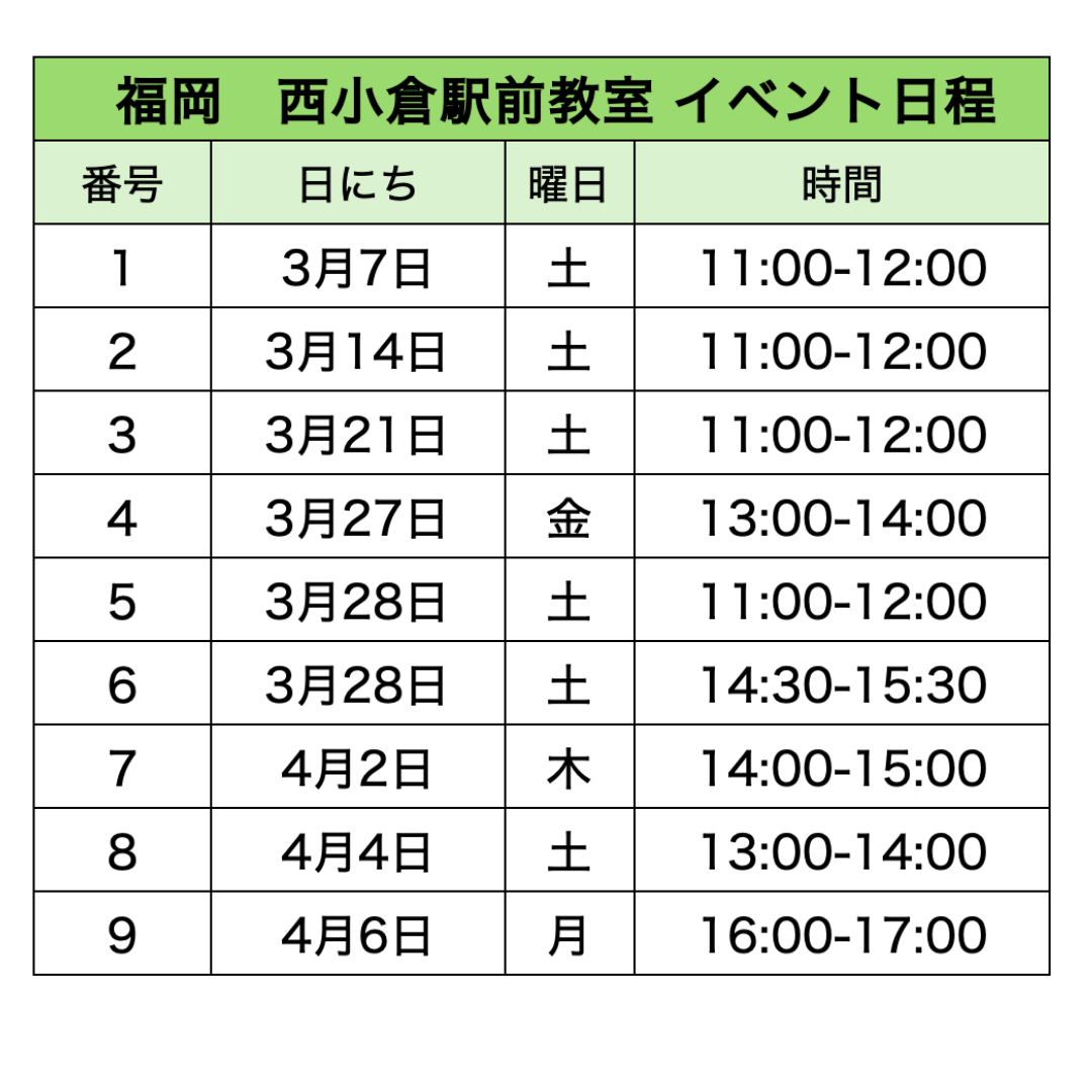 各教室のイベント日程​