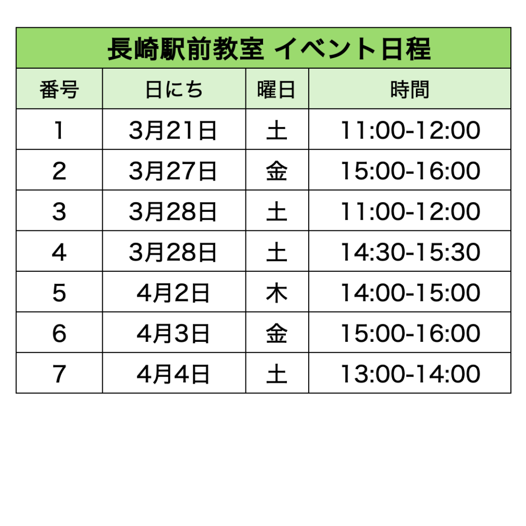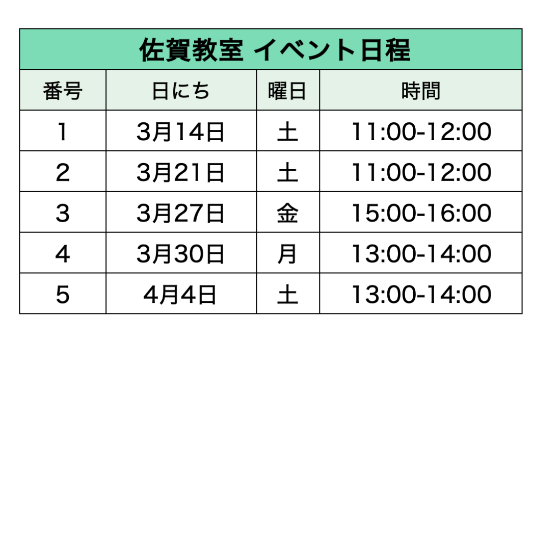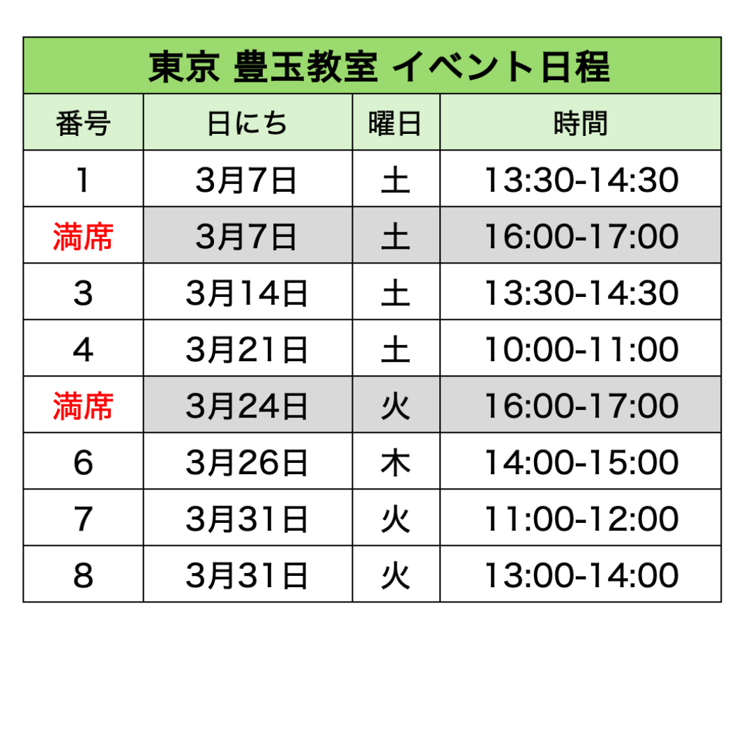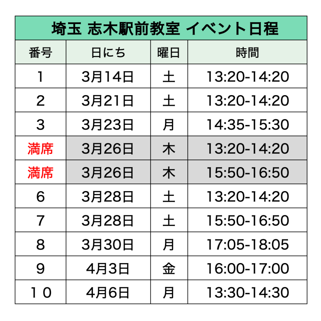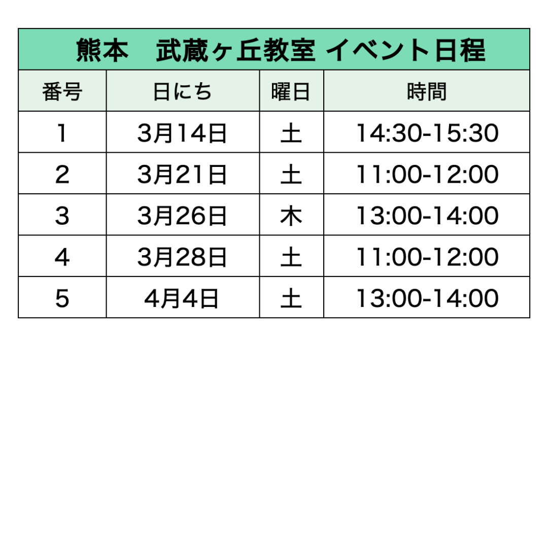 各教室のイベント日程​