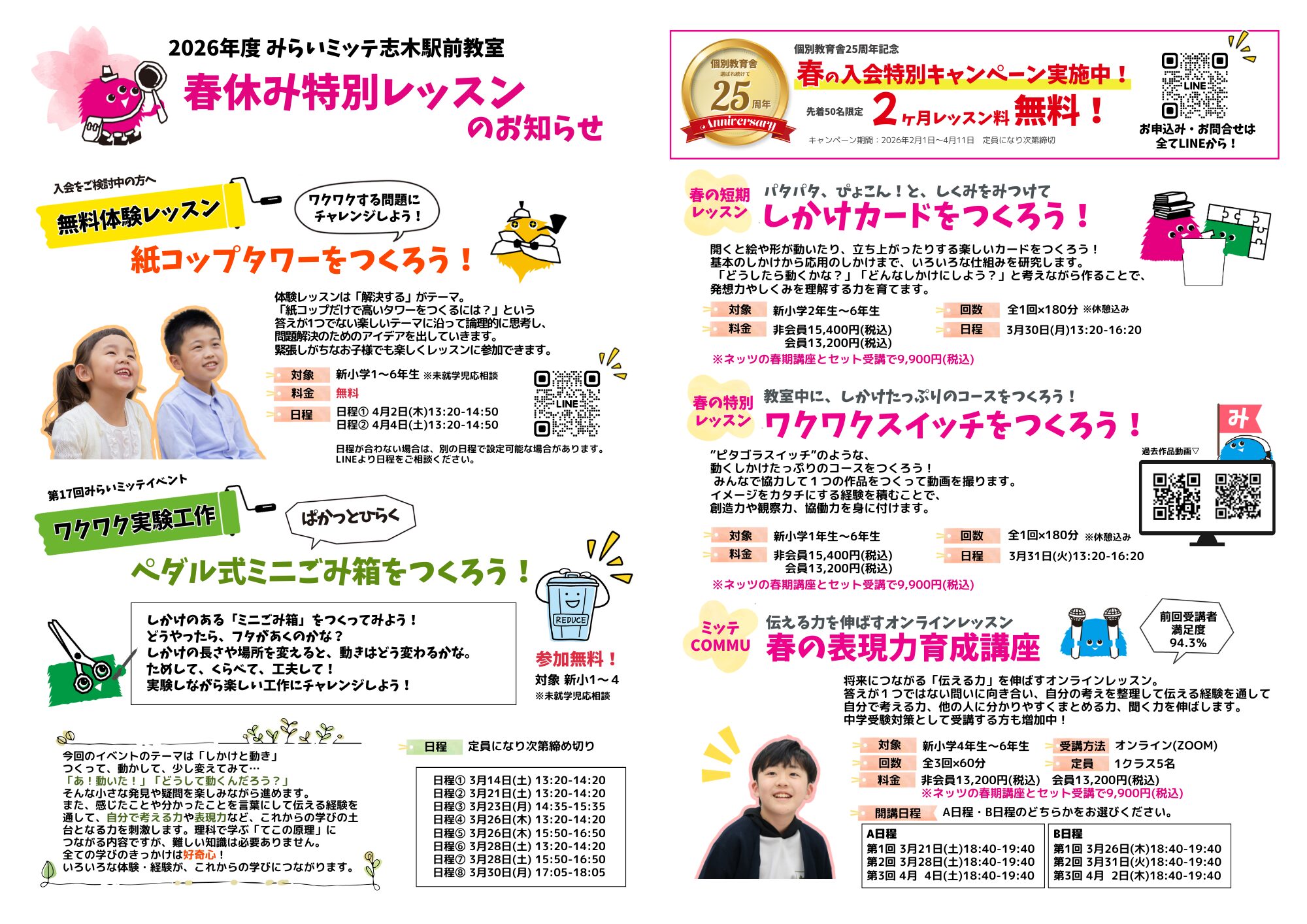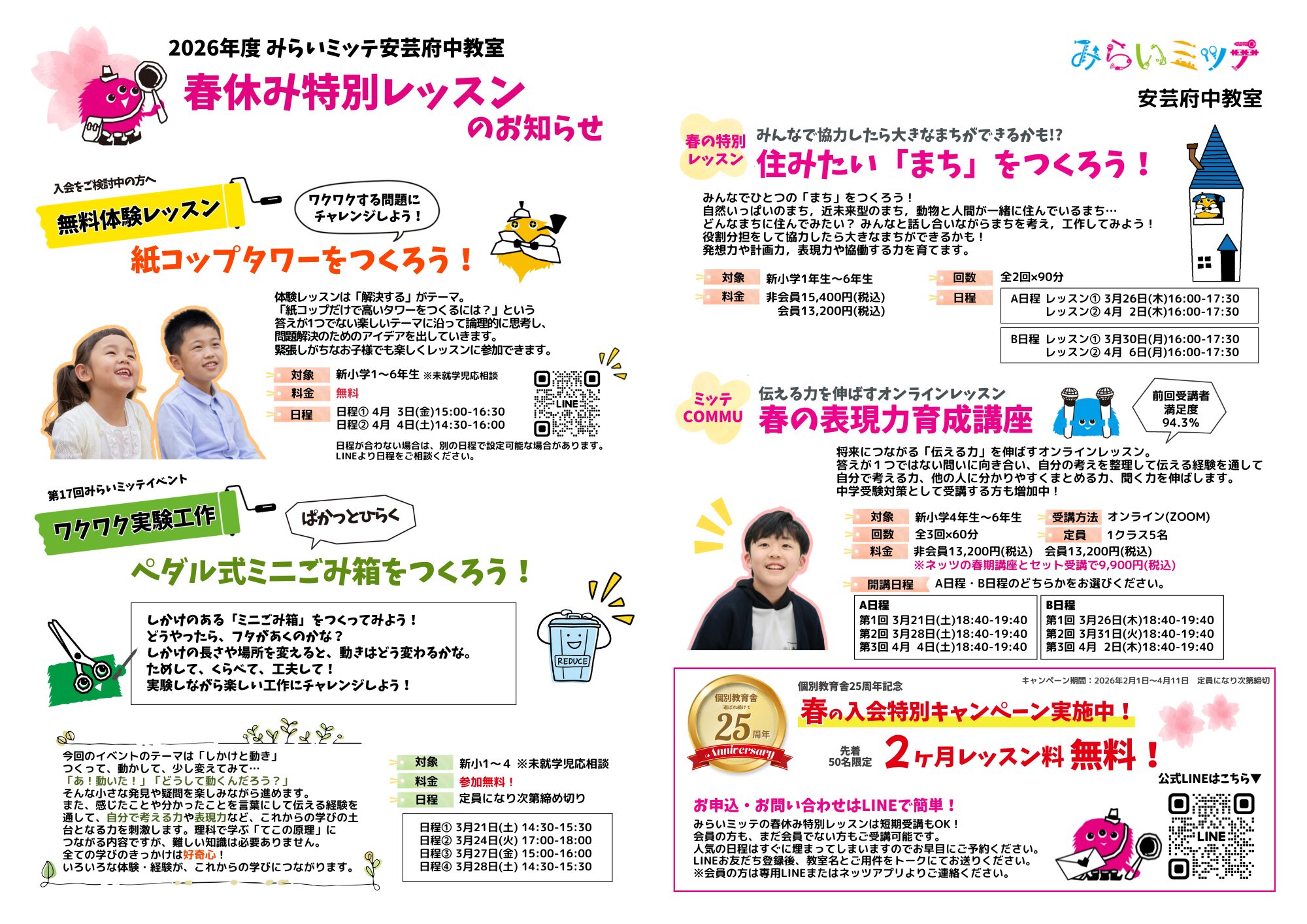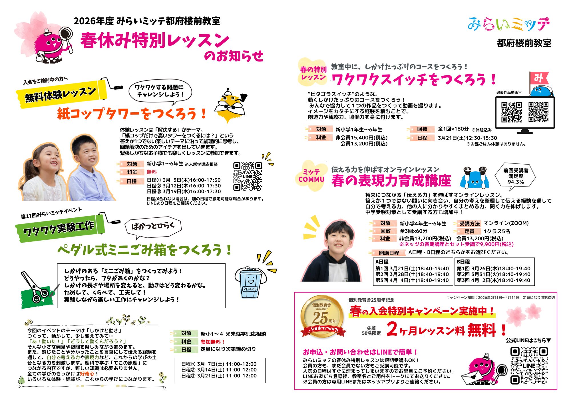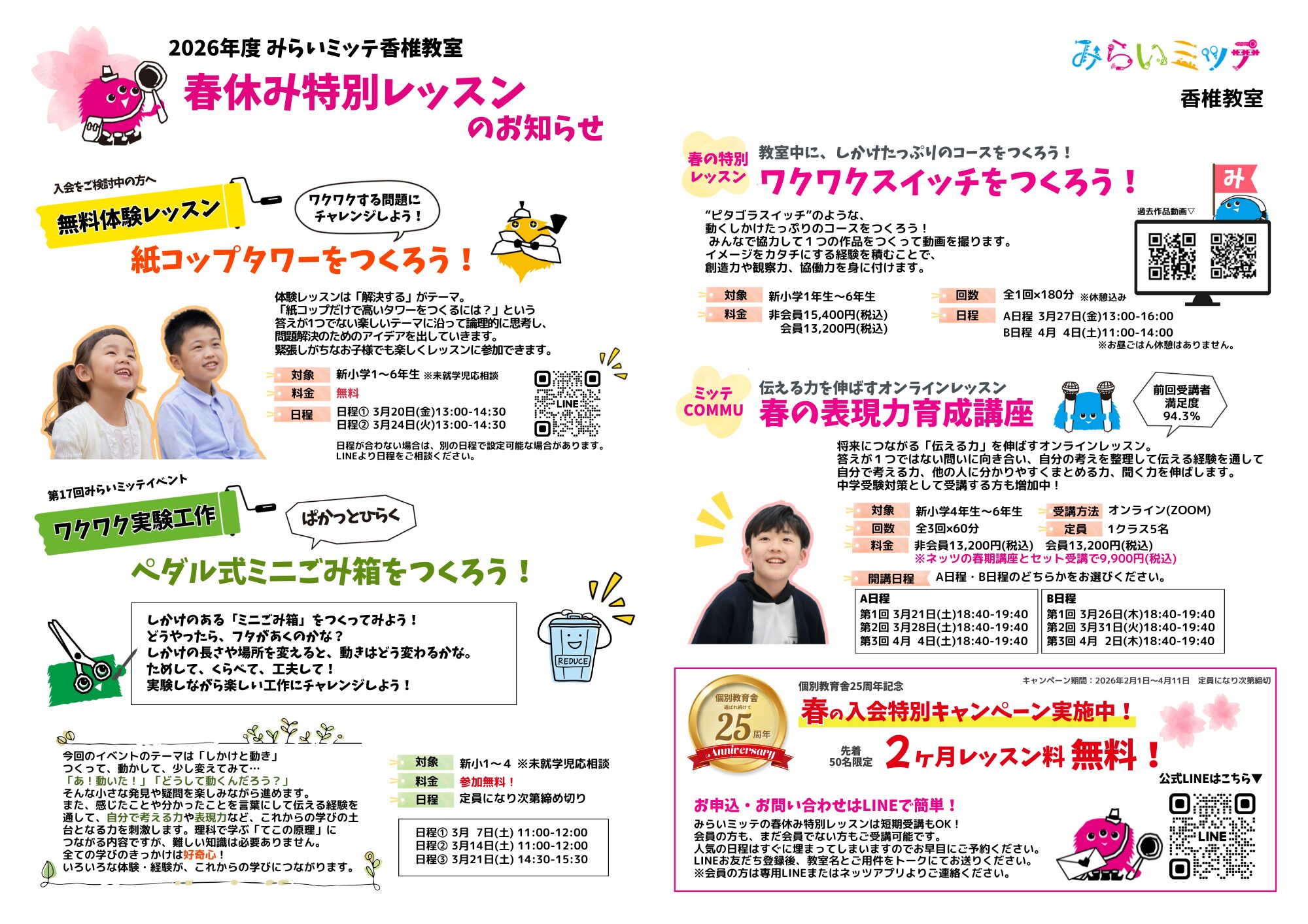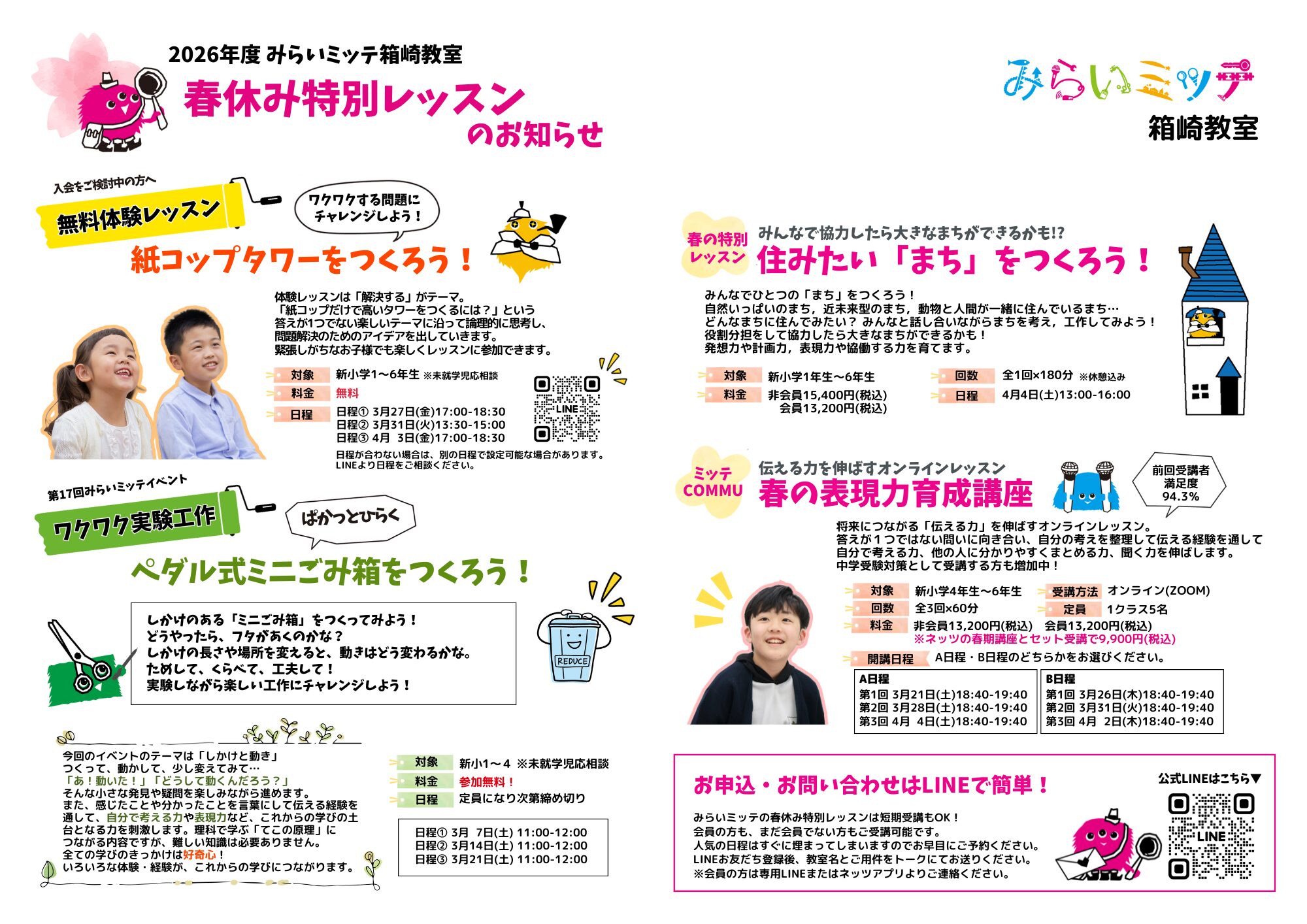 みらいミッテのレッスンを春休みの期間に、短期完結で受けられます♪