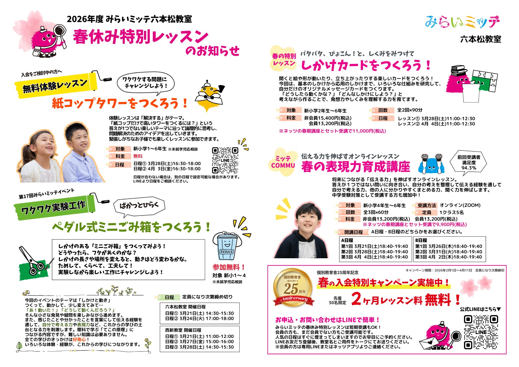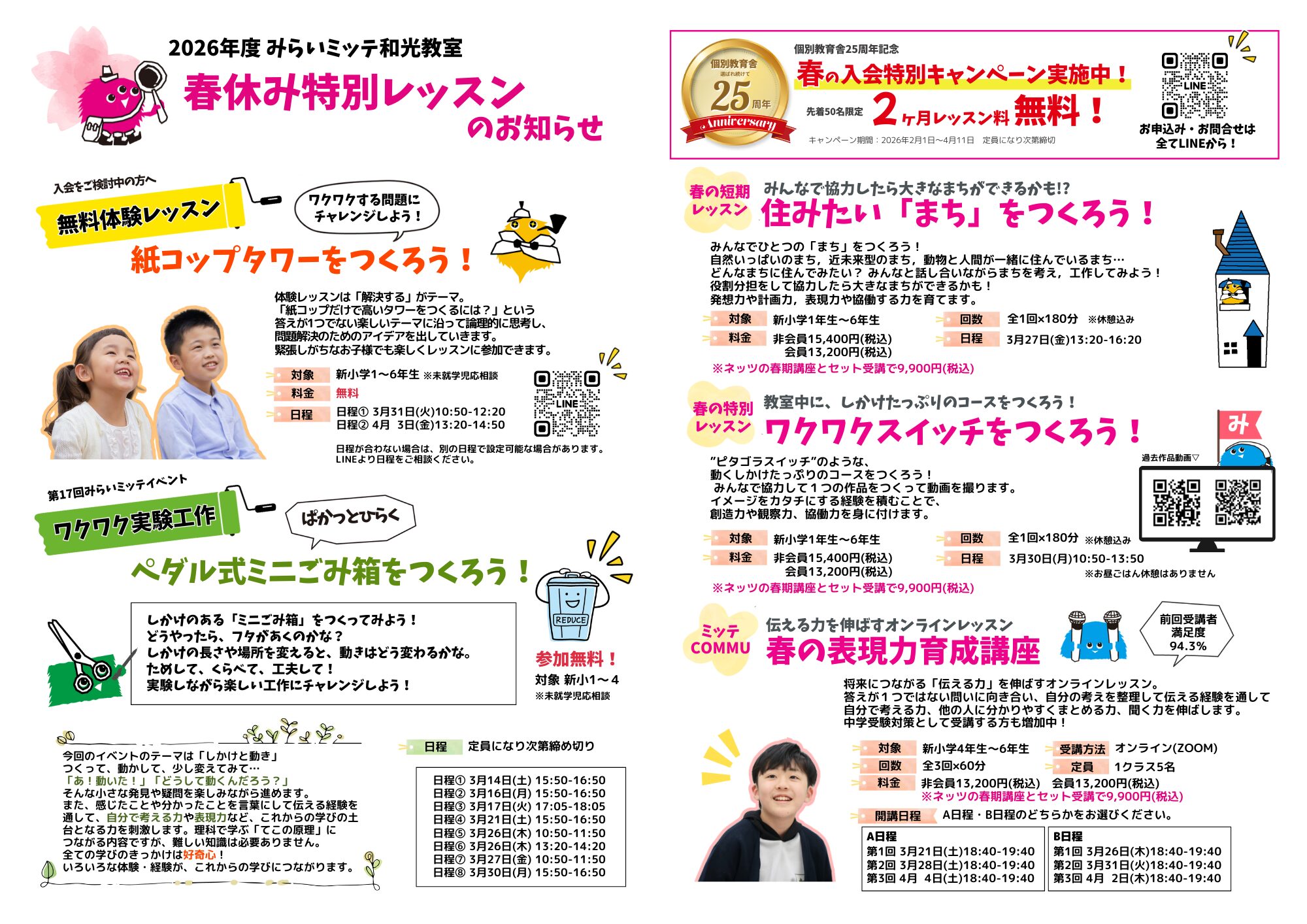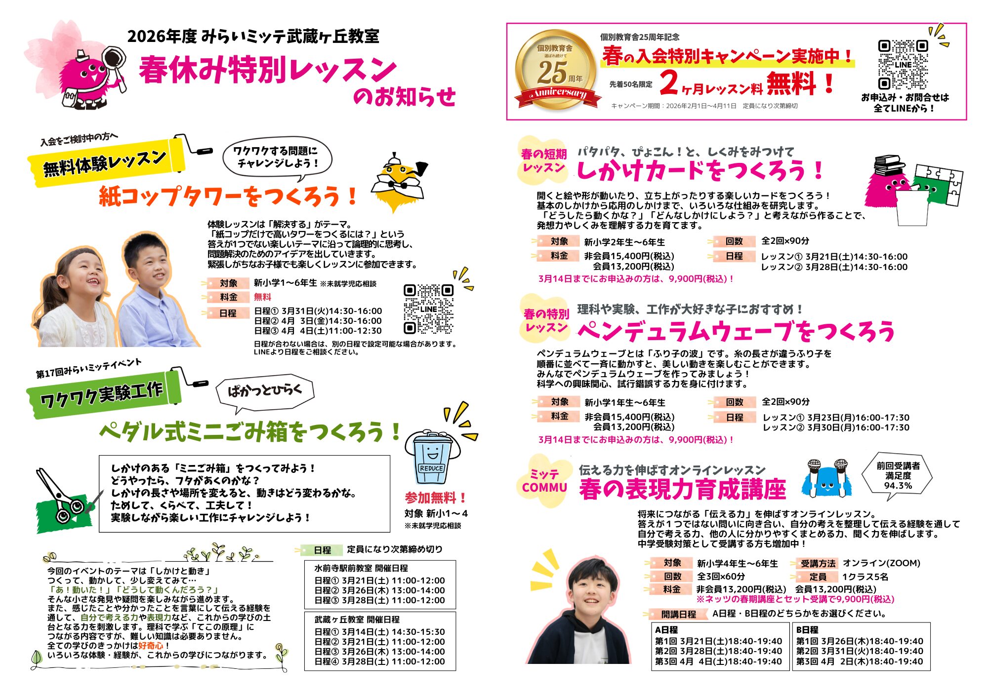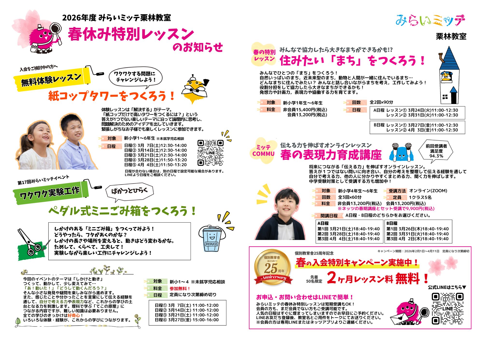 みらいミッテのレッスンを春休みの期間に、短期完結で受けられます♪