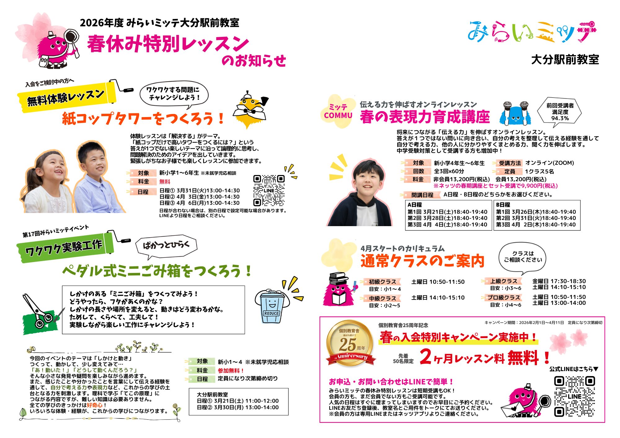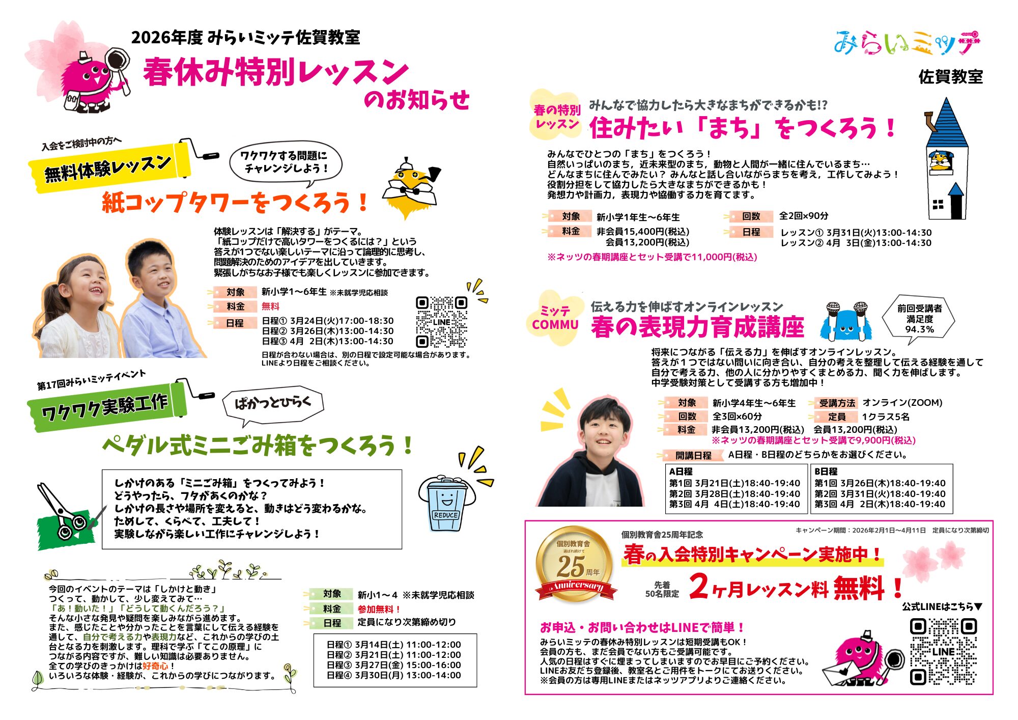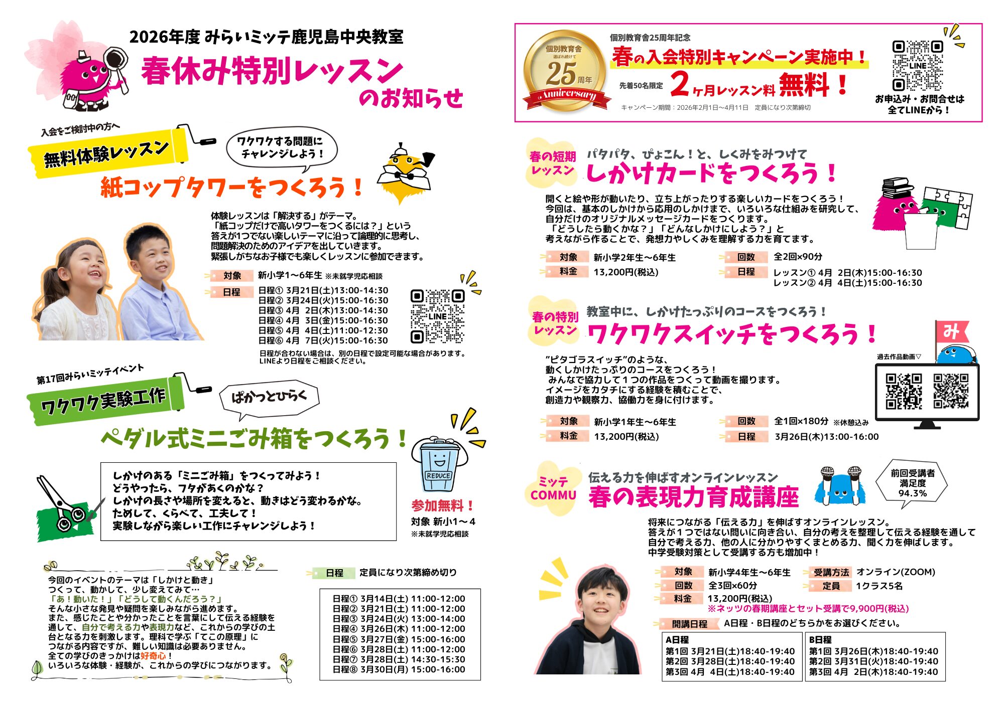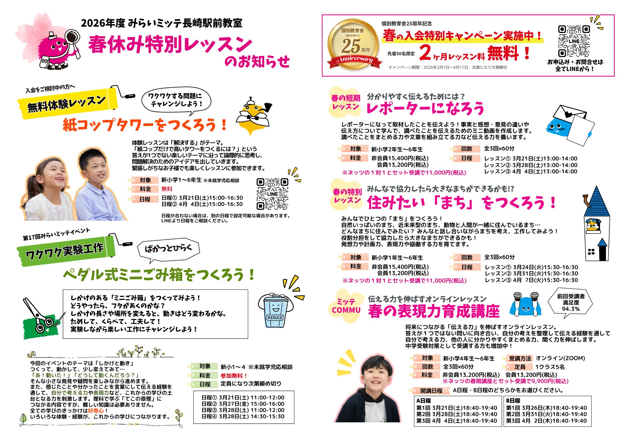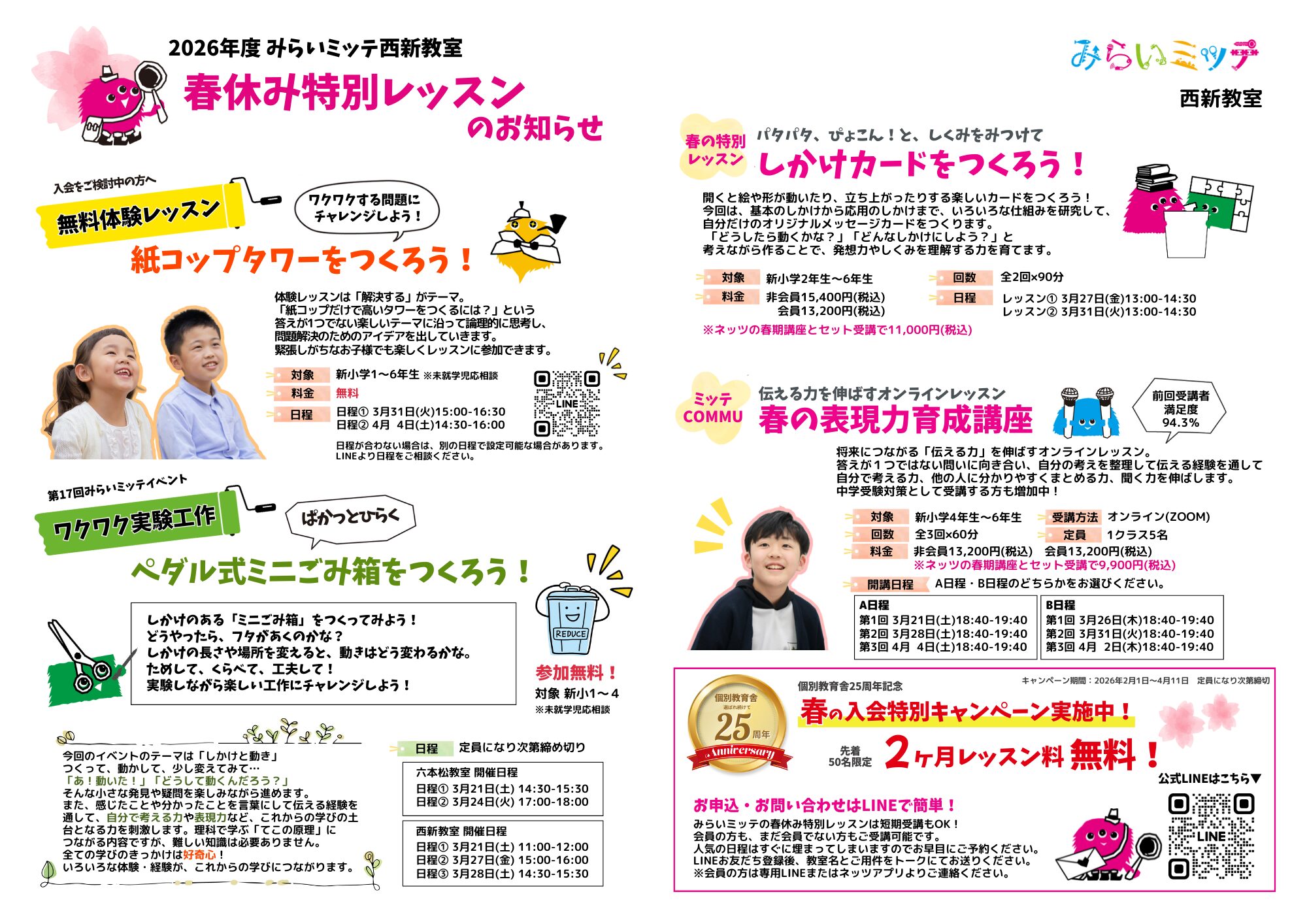 みらいミッテのレッスンを春休みの期間に、短期完結で受けられます♪